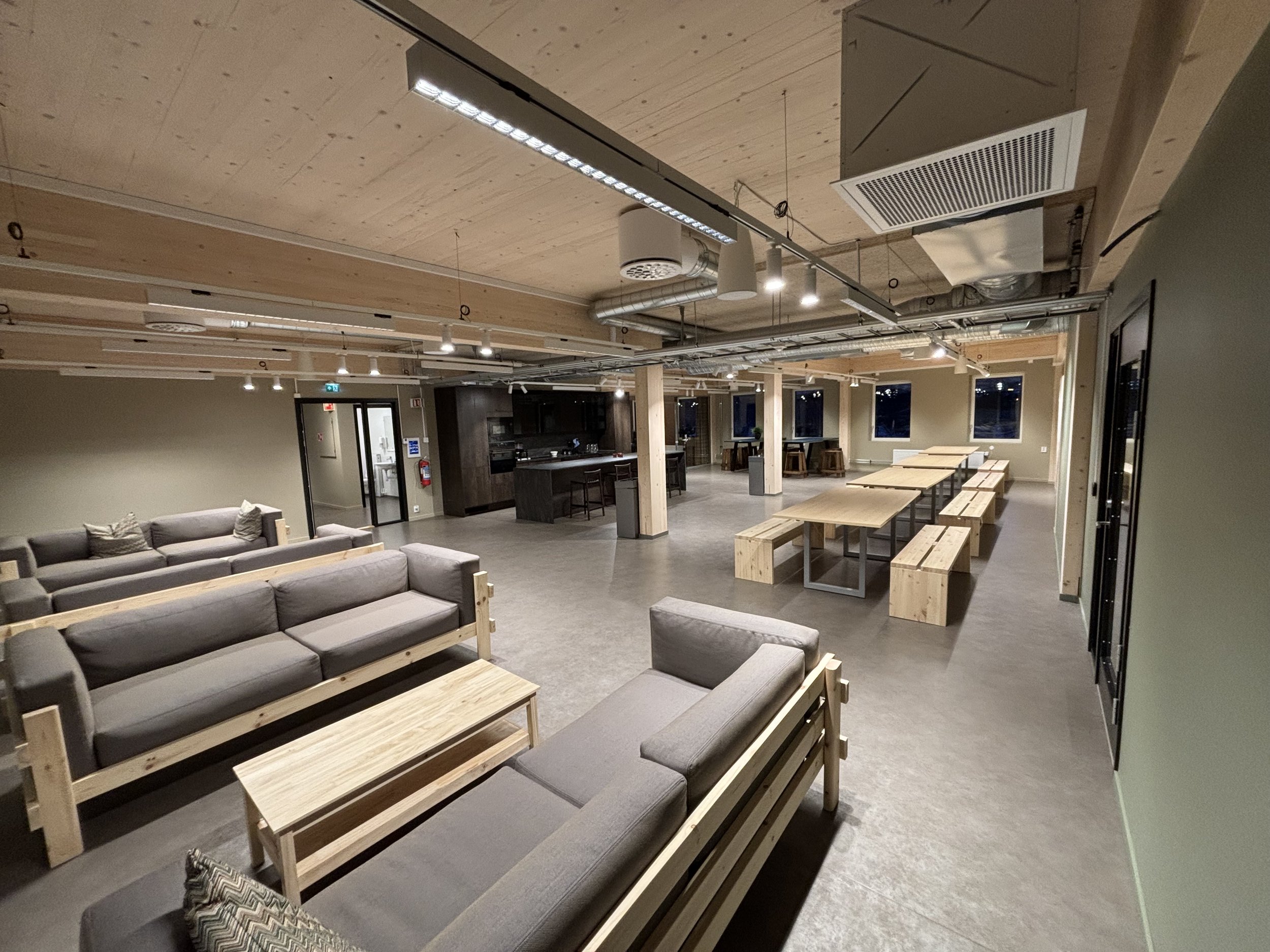 Kjøkenarealet har sitjeplassar til opptil 100 personar og er fullt utstyrt med service og alt naudsynt kjøkenutstyr. Her ligg alt til rette for både faglege og sosiale samlingar.